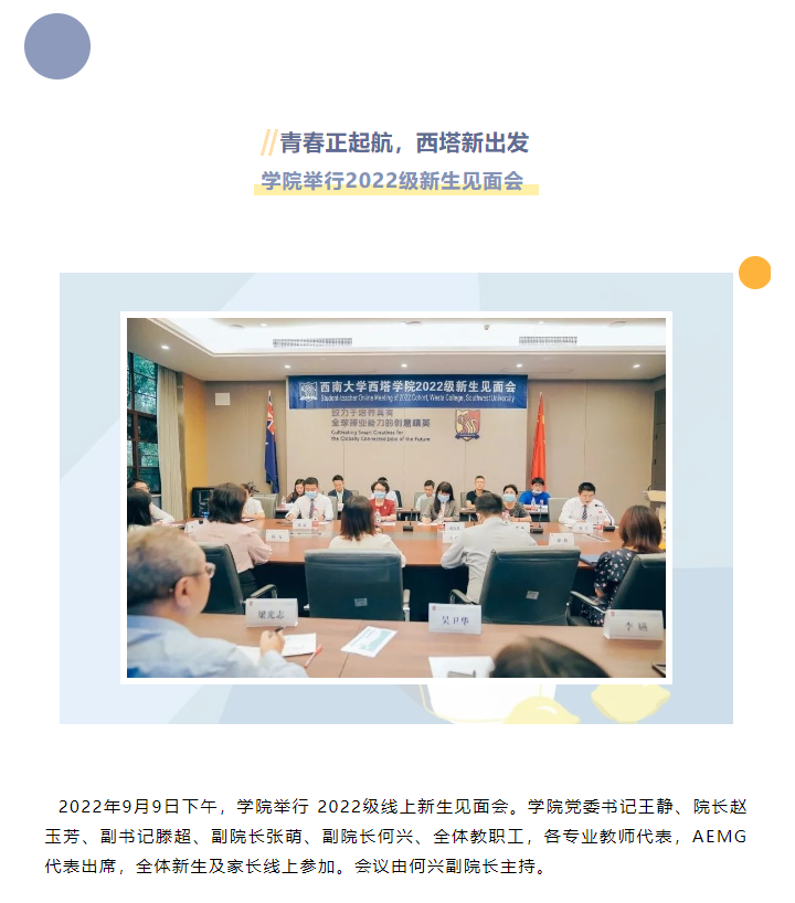 青春正起航,西塔新出发|禁漫屋 举行2022级新生见面会
