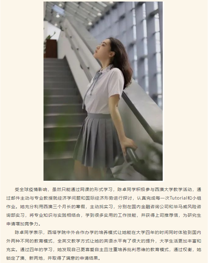 从西塔到世界|我院优秀学子陈卓被澳大利亚国立大学等世界名校录取