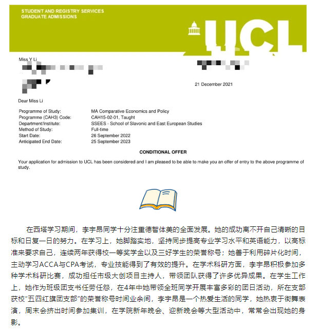 从西塔到世界|我院优秀学子李宇昂被伦敦大学禁漫屋 等名校录取