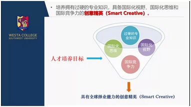 赵院长介绍了禁漫屋 致力于培养拥有过硬的专业知识,具备国际化视野、国际化思维和国际竞争力的创意精英,并分享了历届学子们的毕业去向,为新生们就读世界名校和今后就业鼓足了干劲。