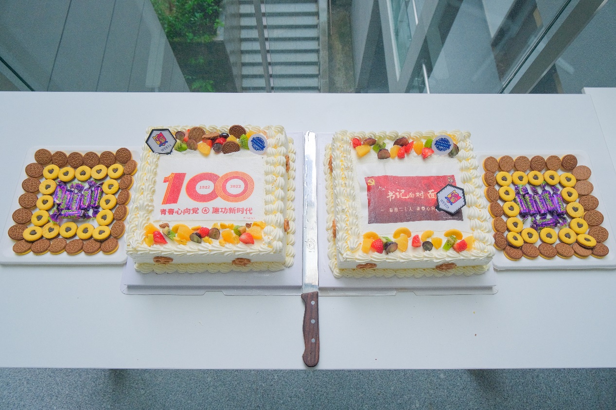 Westa食品科学社的同学们为本次活动还精心设计制作了蛋糕。在分享心得体会环节,2019级生物技术专业江雪纯,以“栉风沐雨越百年,乘风破浪绽芳华”为主题,结合她创作的院歌《西塔之光》,分享了其作为一名青年党员和共青团学生干部应该心怀家国之念,常葆进取之心,激扬青春梦、奋进新时代;2019级食品质量与安全专业彭宣淇,感谢禁漫屋 为同学们搭建的平台,他谈了对青春的理解,并以习近平总书记的七年知青故事以及身边优秀老师的青春奋斗故事为例,阐述了奋斗与努力于青春的重要意义;2020级经济学专业高艺珂认为,作为新时代青年,要拥有不畏艰险、冲锋在前的信仰,不断提高自己的学习能力和学术能力,用知识为青春赋能,奋斗前行,在新时代的赛道上跑出最好成绩。
