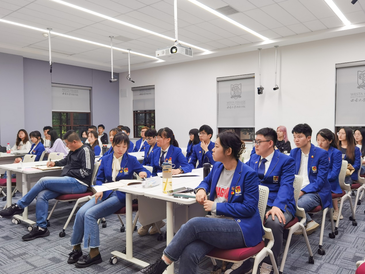 王书记还结合自己的亲身经历,向大家诠释了共青团应如何增强“引领力、组织力、服务力”,并团结带领广大团员青年成长为有理想、敢担当、能吃苦、肯奋斗的新时代好青年,用青春的能动力和创造力激荡起民族复兴的澎湃春潮,用智慧和汗水浇灌青春的梦想,让青春在爱国和奋斗中闪光。最后,王书记给大家分享了作家塞缪尔·厄尔曼的散文诗《Youth》,“Youth is not a time of life, it is a state of mind”, 青春不是生命中的一段时光,而是思想的一种状态。在现场同学朗诵之后,王书记挑选了部分诗句进行朗诵与解读。富有哲理的诗句引起了同学们深深的共鸣,启发了同学们对青春意义的思考与诠释,也激发起大家砥砺前行的勇气与斗志。