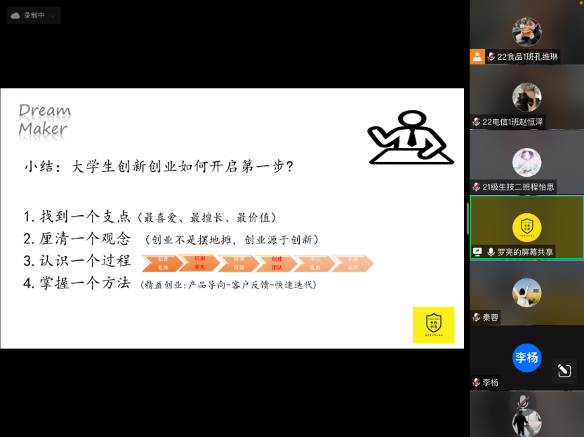 他讲到,在当今的科教兴国、人才强国、创新驱动发展的战略背景下,青年人应当如习近平总书记所强调:“开辟发展新领域新赛道,不断塑造发展新动能新优势。”他还向大家介绍了目前我国创新创业的相关政策以及各类创新创业大赛,如“挑战杯”中国大学生创业计划竞赛、“互联网+”大学生创业创新大赛以及禁漫屋 “含弘杯”大学生创业计划竞赛等。同学们在线上积极与罗老师互动,氛围融洽,创新创业意识不断增强。