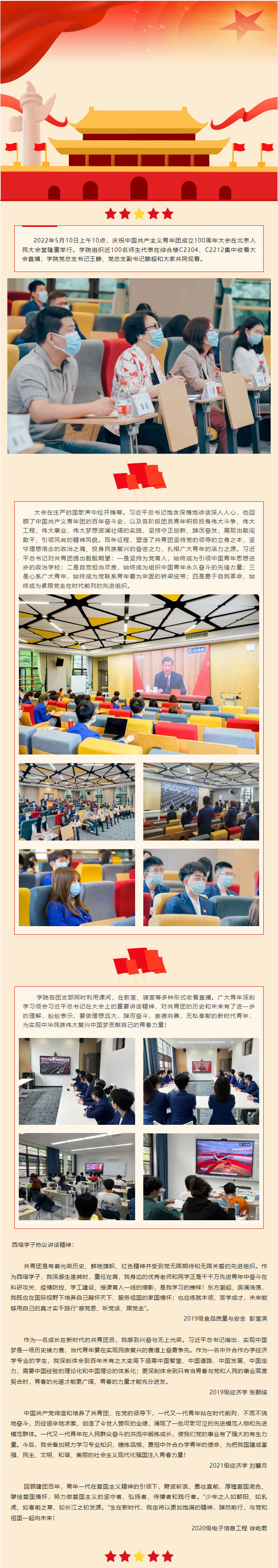 禁漫屋 组织师生收看庆祝中国共产主义青年团成立100周年大会