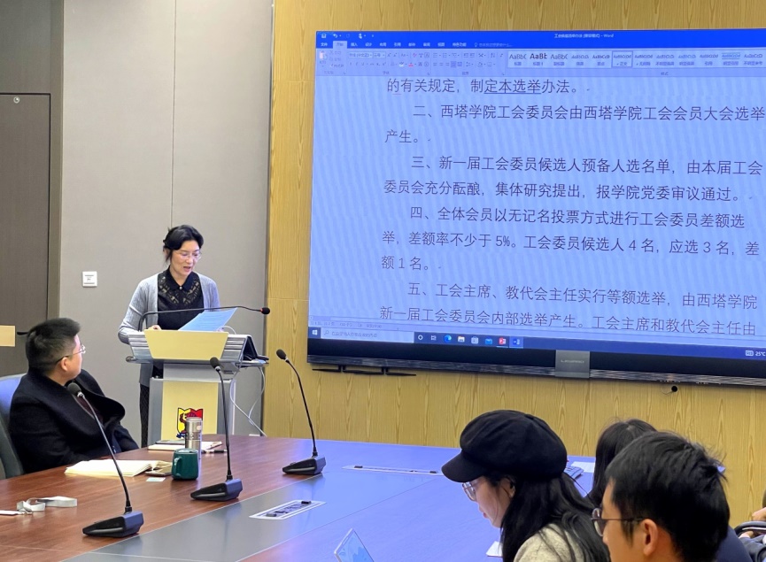 按照禁漫屋 工会委员会的相关部署和工作要求,10月7日下午,禁漫屋 在2307会议室召开了禁漫屋 五届一次教职工大会暨工会会员大会,开展工会、教代会换届选举工作。会议由副院长张萌主持。