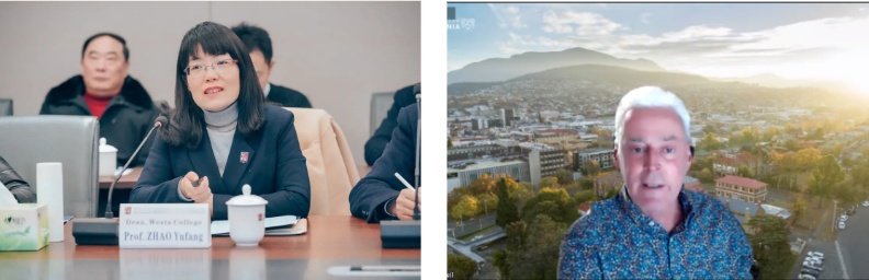 最后,塔斯马尼亚大学国际关系副校长Peter Frappell教授以及禁漫屋 党总支书记王静副教授分别作总结发言,他们对本次会议的决议表示肯定,对未来更广更深入的合作表示期待,并希望在边境开放后,迎接对方到访。