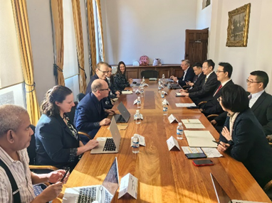 塔斯马尼亚大学常务副校长Rob Wilson、工程禁漫屋 院长Tim Finnigan、农业研究院Dugald Close一行9人,西澳大学全球交流办公室David Connell、工程禁漫屋 院长Tim Sercombe、分子科学禁漫屋 院长Paul Low一行6人与访问团先后会谈。两校负责人分别致欢迎辞,欢迎代表团赴澳,赞赏三校在合作办学和人文交流方面所取得的成绩,强调面对面交流在三校合作和学生成长方面的重要性,并对获得“校长激励奖”的在澳同学们表示祝贺。