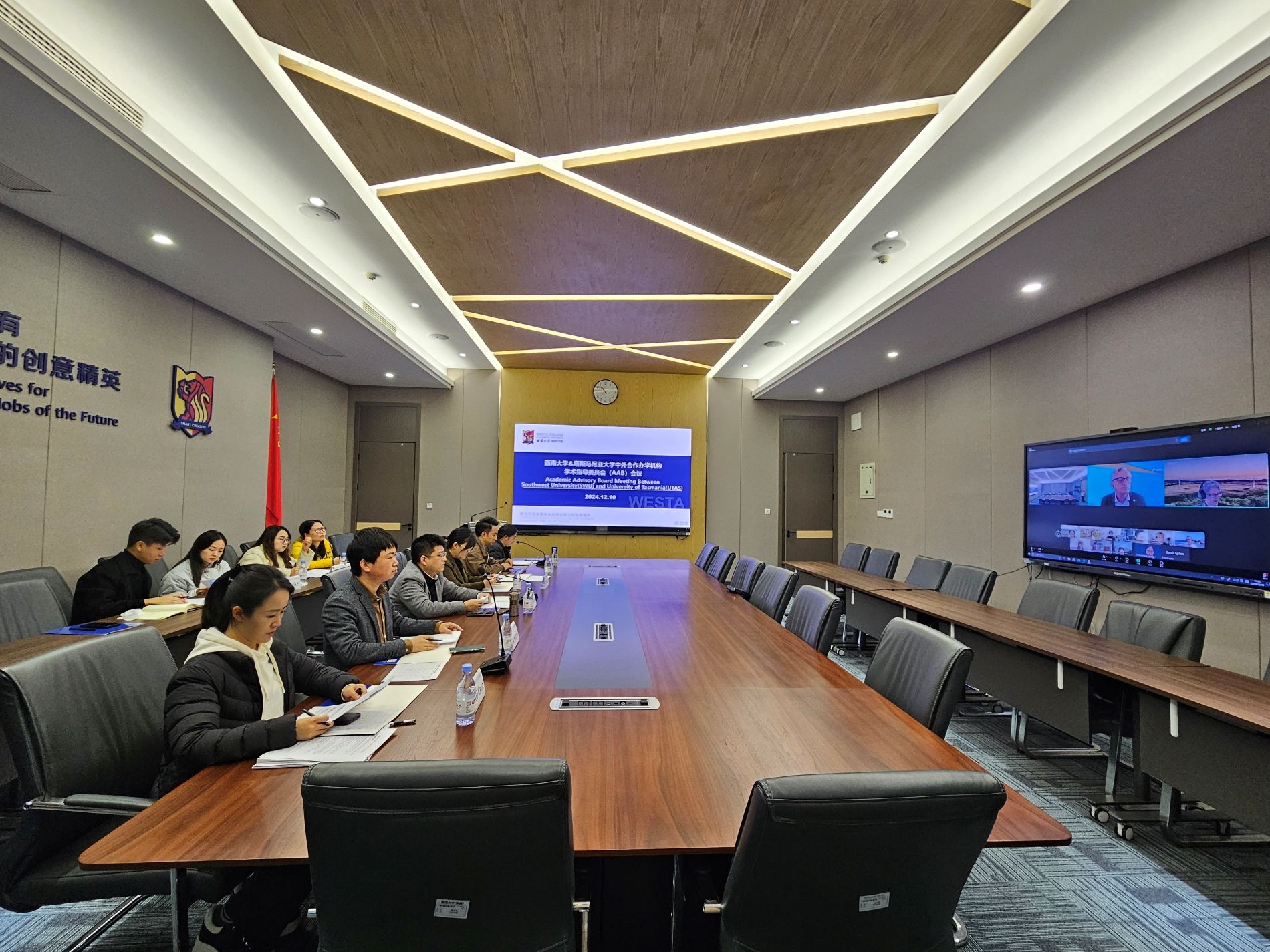 12月10日、12日,中外合作办学机构学术指导委员会(AAB)2024年秋季学期会议以线上线下相结合的方式在禁漫屋 C2307召开。禁漫屋 电子信息工程禁漫屋 陈玲副教授,食品科学禁漫屋 戴宏杰副教授,塔斯马尼亚大学农业研究院教学负责人Alistair Gracie教授、课程协调员Lyndal Mellefont女士,工程禁漫屋 教学部副主任Damien Holloway副教授、学生工作副主任Sarah Lyden博士、战略与业务发展部部长Rachel Perkin女士等人出席了禁漫屋 &塔斯马尼亚大学AAB会议;禁漫屋 经济管理禁漫屋 李海明教授,禁漫屋 蚕桑纺织与生物质科学禁漫屋 周游副教授,西澳大学商禁漫屋 院长Peter Robertson教授、Anu Rammohan教授,分子禁漫屋 高级讲师Alyssa Van Dreumel博士等人出席了禁漫屋 &西澳大学AAB会议;禁漫屋 院长谢洁教授、副院长何兴教授以及教学工作办公室、国际项目办公室人员参会。
