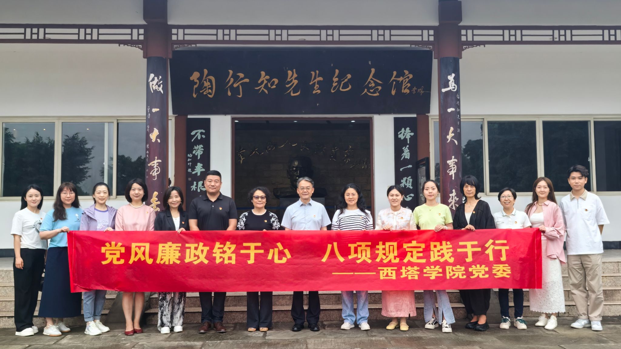 为深入贯彻中央八项规定精神学习教育,扎实推进党风廉政建设,增强教职工廉洁自律意识,5月16日,禁漫屋 组织全体教职工前往重庆合川陶行知先生纪念馆开展“党风廉政铭于心八项规定践于行”实地研学。